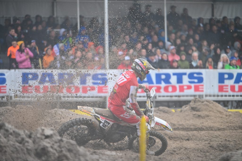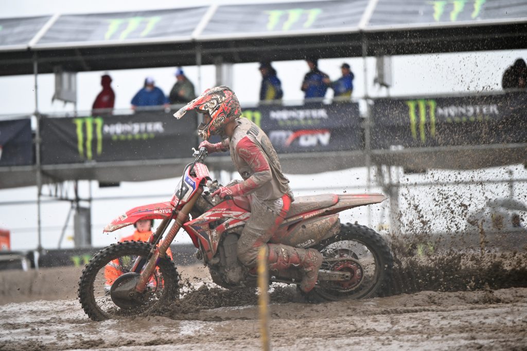 予選の1レース目はMXGPクラス。プラドはトップで飛び出し、450への対応力を見せる。でもやはり練習不足なのか、途中で順位を落とす結果に。来年がとても楽しみ。